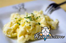 En un bol batir 2 huevos con 2 cdas. de leche descremada, agregar sal a gusto y volcar la mezcla en un sartén a fuego máximo, revolviendo lentamente. Cortar queso en cuadritos pequeños, añadir [+]