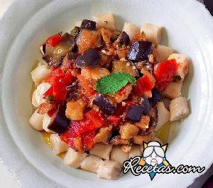 Hervir las patatas en agua hirviendo durante 35-40'. Pelarlas y triturarlas en un machacador de patatas. Mezclarlas con la harina de trigo sarraceno y la harina de arroz; trabajar la mezcla hasta que esté [+]