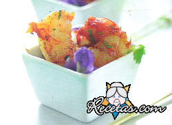 Mezclar el jengibre rallado, el ajo cortado en rodajitas, el coriandro, el comino, la Cayena, los tomates rehidratados y procesados como un puré, el cilantro picado (en su defecto perejil, aunque no es lo [+]