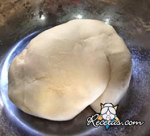 Colocar la harina en forma de corona sobre una mesada y agregar una pizca de sal, 4 cucharadas de aceite y 1 dl de agua tibia en el centro de la corona Comenzar a trabajar incorporando gradualmente la [+]