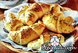 Mezcle en un bol la harina, los polvos de hornear y la sal.Derrita la mantequilla y agregue la leche frÃa.Incorpore esta mezcla a la harina y forme una masa blanda. No la amase.Forme pancitos redondos y [+]