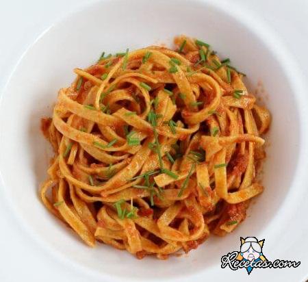 Procesar los tomates con su aceite hasta que formar un pesto suave, mezclar con el pimentón ahumado. Hervir los fideos en agua con sal, escurrir reservando un par de cucharadas del líquido de cocción, [+]