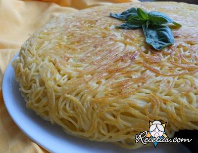 Hervir los fideos y escurrir un par de minutos antes del tiempo de cocción indicado en el envase. En un bol batir los 3 huevos con una pizca de sal y pimienta al gusto , perejil o albahaca picados y el [+]