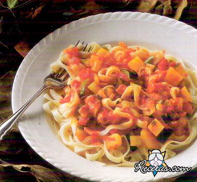 Colocar en una sartén los tomates, 2 cucharadas de aceite de oliva y un poco de sal. Cocinar aproximadamente por 20 minutos, hasta obtener una salsa reducida.Poner en una olla grande 1 y 1/5 litros de [+]