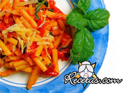 Cocinar los fideos con un poco de aceite, sal y laurel.Mientras tanto, saltear la zanahoria rallada y la cebolla picada.Añadir leche. Mezclar y agregar la nuez moscada.Servir los macarrones con la salsa [+]