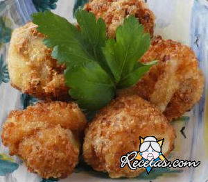En un bol poner el pan rallado, el queso, el diente de ajo picado, el perejil, una pizca de sal, el aceite, el vino y mezclar [+]