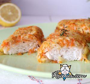 Disponer los filetes en una fuente para horno, sazonar con sal, pimienta, aceite y hierbas (como la mejorana), tapar con papel plástico y dejar reposar en la nevera durante al menos 30 minutos.
