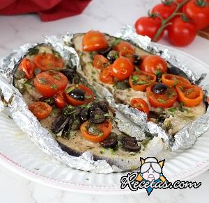 Poner el pez espada en una hoja de papel pergamino o de alumino, [+]