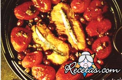 Salar el pescado, rociarlo con limón y pasarlo por harina.Dorar las rodajas en el aceite, de ambos lados.Mientras tanto, en otra sartén, calentar 2 cdas. de aceite, agregar los tomates con un poco de [+]