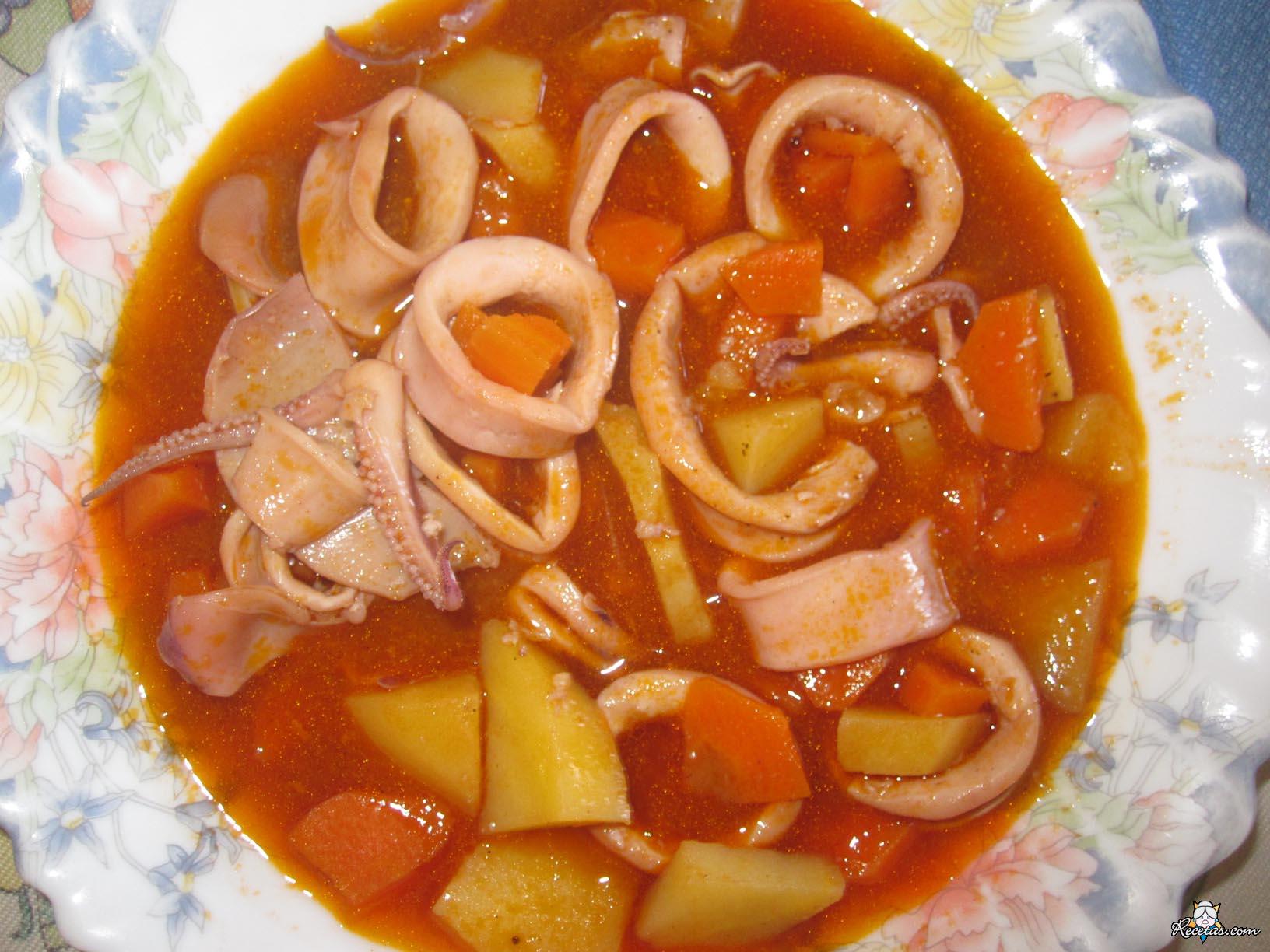Limpiar los calamares retirándoles la piel, la estructura ósea y las entrañas.Poner dos cucharadas de aceite de oliva en una olla pequeña y calentar. [+]