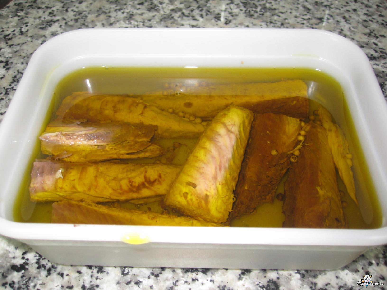 Limpiar bien el exterior del pescado. Cortarle la cabeza y la cola. Volver a lavar, ya que la melva suelta mucha sangre al cortarla.Partir el lomo en dos o tres partes. [+]