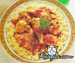 Cocer el cous-cous en agua ligeramente salada. Escurrir y añadir 500 ml de agua en la que habrá disuelto el azafrán. Dejas reposar durante 10 min.Rehogar el cous-cous en una cazuela con un poco de [+]