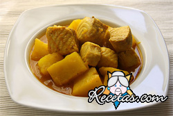 Poner al fuego una cazuela con agua y el azafrán, echar las patatas cortadas en dados grandes y hervir hasta que estén tiernas. Mientras tanto, en una sartén al fuego con el aceite, freÃr el pan junto [+]