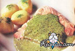 Cortar en cuatro el trozo de salmón, preferiblemente rosado y del lomo. Hacer hervir media taza del vino blanco con medio litro de agua, sal, pimienta en granos, una hoja de laurel y dos rodajas de [+]