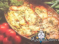 Coloque el pescado en una bandeja para horno con la manteca, el vino, el perejil y la cebolla, y deje a fuego lento durante 12 minutos. Retire el pescado, quÃtele las escamas y reserve caliente. Añada un [+]