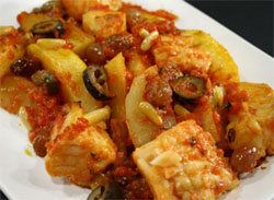 Remoje el bacalao durante 24 horas cambiando el agua de remojo cada 8 horas. Rehogue en aceite parte de la cebolla picada. Agregue los pimientos y el bacalao. Por otro lado, caliente 3 cucharadas de [+]