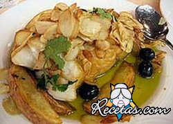 Cortar el pescado en trozos regulares. FreÃr las rebanadas de pan.Sellar el pescado. Una vez listo, retirarlo y colocarlo en una cazuela.Triturar el pan y mezclarlo con el tomillo, pimentón, sal y el [+]