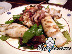 Preparación: Sudar la cebolla junto con el ajo y las echalotes en aceite. Una vez listas, mezclar con el pan rallado hasta obtener una pasta. Rellenar los calamares con esta preparación y cerrarlos con [+]