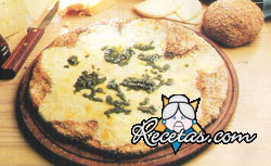 Calentar el horno. Colocar la pizza en una pizzera untada con aceite. Cortar la panceta en daditos y calentarlos con la mantequilla y aceite y con las cebollas en rodajas. Untar la pizza previamente [+]