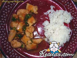 Cortar las pechugas de pollo en daditos regulares de 2 cm. aproximadamente.Calentar el aceite e incorporar los trozos de pechuga. Mover hasta sellar. Posteriormente agregar las almendras junto con la salsa [+]
