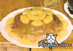 Ponga a escurrir las rodajas de ananás, luego córtelas en cuartos. Abra la lata de puré de castañas, agregue la manteca blanda y la vainilla y deje enfriar. Mezcle el almÃbar de ananás con el [+]