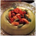 Preparar gelatina de manzanas o naranja y enfriar sobre cubos de hielo. Cuando comienza a solidificarse agregarle granos de uvas blancas sin el hollejo y semillas. Poner en un molde fantasÍa humedecido y [+]