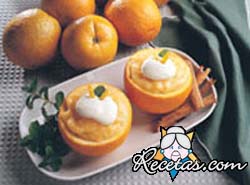 Preparación:Cortar una tapa a cada una de las cuatro naranjas, retirar la pulpa con cuidado para no romper las cáscaras.Exprimirlas y, luego, poner a hervir, a fuego lento, todo el zumo obtenido.Agregar [+]