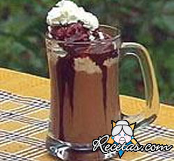 Licuar las leches y la banana con el café.Verter en una copa aparte la salsa de chocolate (solo en las paredes de la copa) y luego agregar la mezcla de la licuadora dentro.Adornar con crema chantilly, [+]