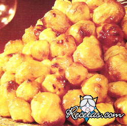 Bata ligeramente las yemas junto con los huevos enteros. Coloque el azúcar, cubierto con agua, en un recipiente. Hierva hasta que tome punto de hilo fuerte. Reserve 6 cdas. de almÃbar. Vierta los huevos [+]