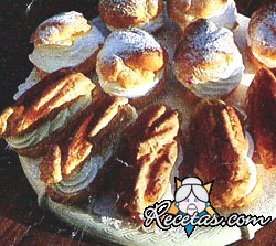 Hacer hervir medio litro de agua con la manteca, el azúcar y pizca de sal. Echar la harina de una sola vez y revolver enérgicamente hasta que la masa forme un bollo que se despegue del recipiente. Pasar [+]
