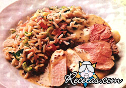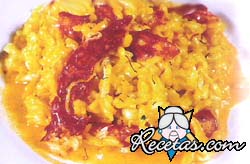Calentar una cucharada de cebolla picada en dos cdas. de manteca, agregar el arroz y saltearlo, revolviendo sobre el fuego. Mojar con caldo hasta el doble de la altura del arroz en la cacerola, [+]