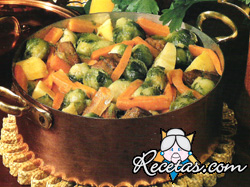 Lave bien todas las verduras. Ponga el aceite en una olla y cuando esté bien caliente, dore las carnes. Agregue sal y pimienta y espolvoree con la harina.Revuelva varias veces y añada el vino blanco. [+]