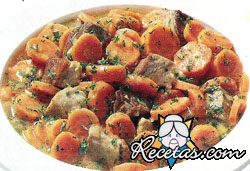 Derrita la manteca en una olla. Ponga la carne y dore a fuego alto; cuando cobre color dorado, añada la cebolla, rehogue hasta que esté transparente (10 minutos) a fuego moderado. Agregue las zanahorias, [+]