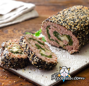 Agregar el cebollino picado y enrollar la carne en un rollo apretado, asegurarlo con un palillo.